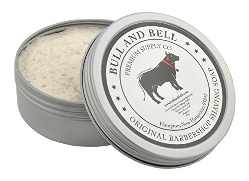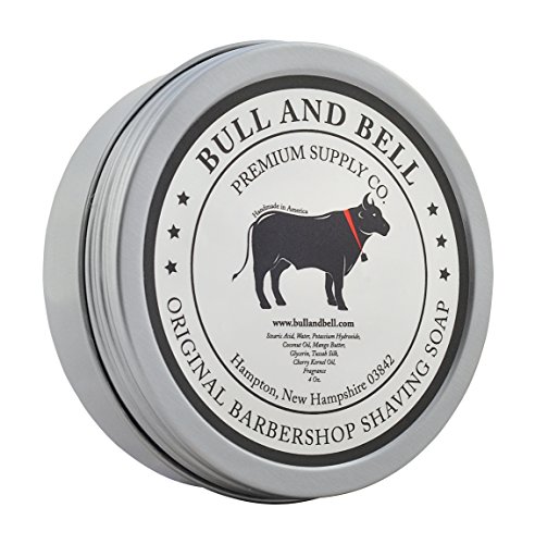 Bull and Bell Original Barbershop Shaving Soap - Handmade in the USA with Mango Butter and Coconut Oil - 4 Oz - Best Shave Soap for Sensitive Skin