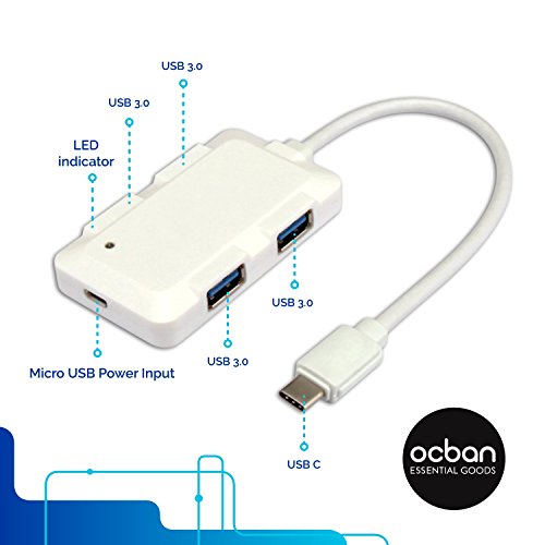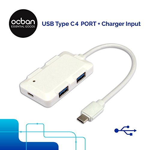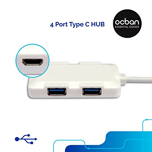 OCBAN 4 Port USB Type C Hub + Charge Perfect Accessory for NEW Macbooks, Chromebook, Pixel, etc. Expand your Mac/Chromebook to 4 USB A 3.0 Ports while Charging using Micro USB