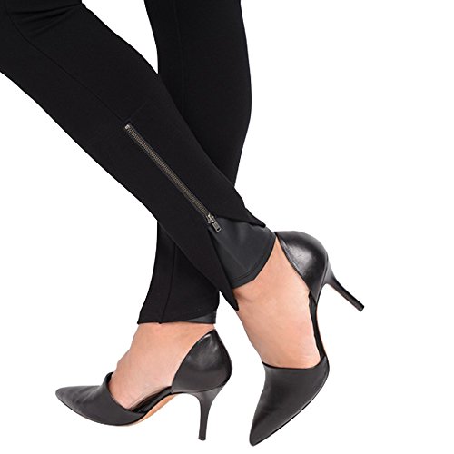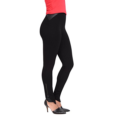 Bottom of legging features an origami inspired geometric leather detail with functional zipper