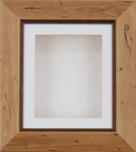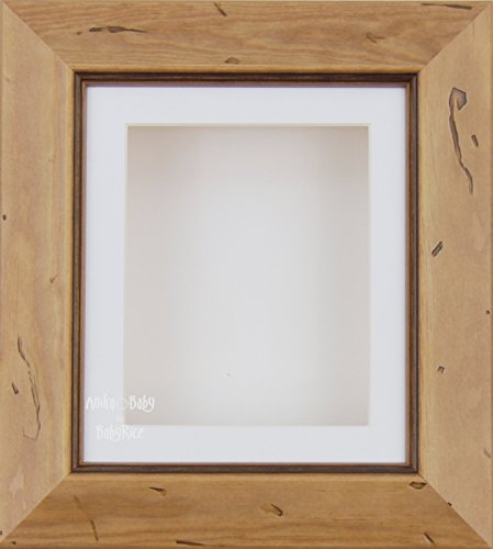 -. Title : BabyRice Deep Box Display Frame for 2D 3D Art Objects Medal Keepsake Baby Casts 1st Bootees Flowers Rustic Pine / White Mount / White backing