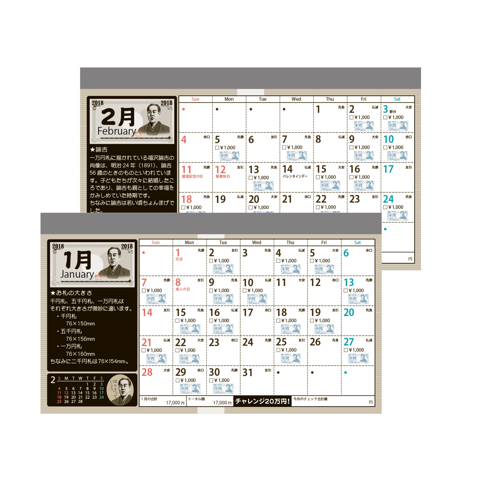 Alta's Piggy Bank Calendar, Calendar for 2018 Calendar with 200,000 yen will be saved The savings type wants to get a real bundle.