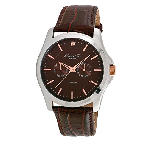 -. Title : Kenneth Cole 10022313 Men's Genuine Diamond Silver Watch with Brown Croco Leather Strap