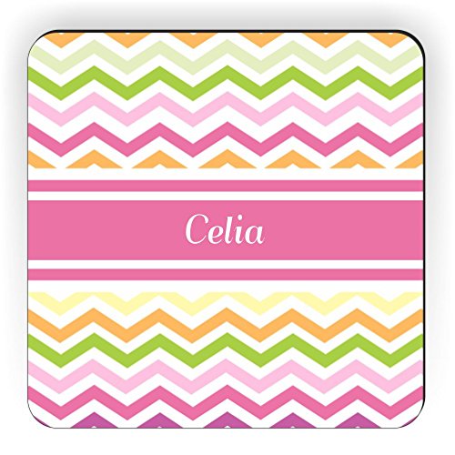 Rikki Knight "Celia" Pink Chevron Name Design Square Fridge Magnet