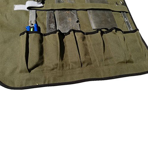 - Durable Material: Heavy Duty 16 OZ Wax Canvas,strong durable, waterproof and easy to clean, you can securely store a range of large to small knives and your sharpening files even for the screwdrivers