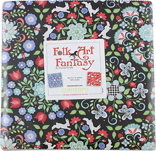 Amanda Murphy Folk Art Fantasy 10X10 Pack 42 10-inch Squares Layer Cake Benartex