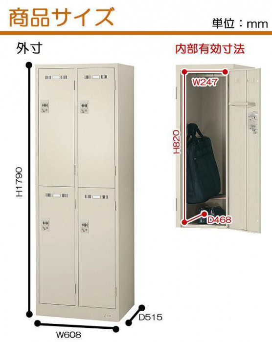 | 仕様 | ●ボタン錠タイプ ●完成品 ●グリーン購入法適合品 ●耐荷重 ハンガーパイプ:20kg、網棚:10kg |