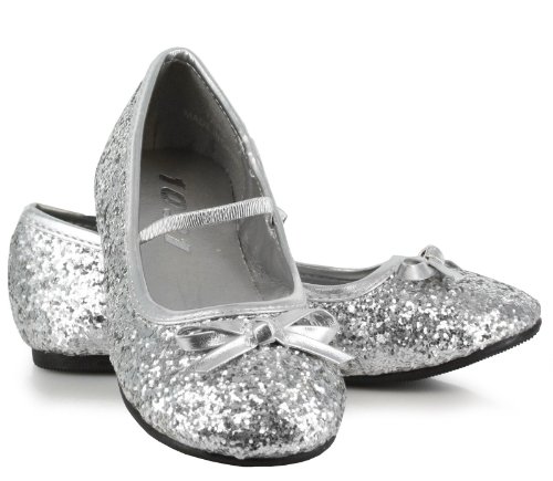 Product DescriptionIncludes 1 Pair of Children's Flat Heel Ballet Glittering Slippers0