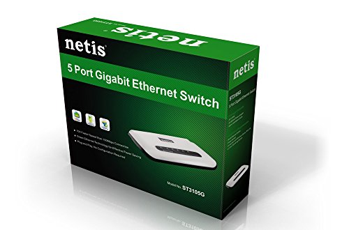 The Netis ST3105G Unmanaged 5-Port Gigabit Switch provides Auto-Negotiation on all 5 RJ45 Ports. All ports support Auto MDI/MDIX function, eliminating the need for crossover cables or uplink ports. Together with the plug-and-play & Green Power feature, it will provide you with a low-cost, easy-to-use, high-performance, seamless and standard upgrade to improve your old network to a Gigabit Network.Feature
