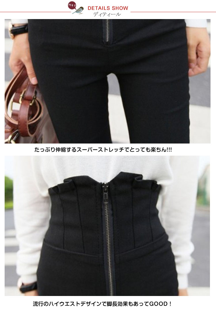 | 大人気のフロントジップハイウエストブラックスキニーパンツが登場!ハイウエストデザインなので、お腹周りをすっきり見せ、INしてもキレイなのが嬉しいPOINT。伸縮性の高い綿生地は吸い付くようなフィット感で、女性らしい美脚&美尻のシルエットを演出してくれます。 S?3Lまでの豊富なサイズ展開で、どなたにもオススメのできるデニムパギンスです。 | |