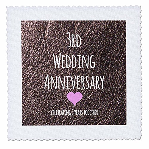 3dRose 3rd Wedding Anniversary Gift - Leather Celebrating 3 Years Together Third Anniversaries Three Yrs - Quilt Square, 8 by 8-Inch (qs_154430_3)