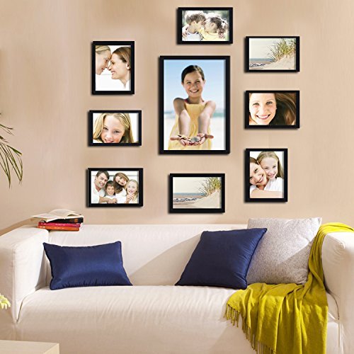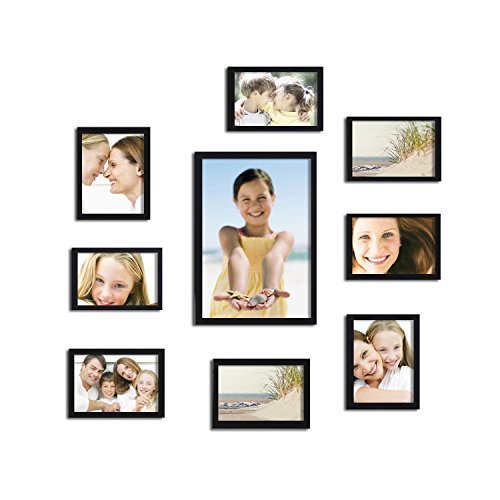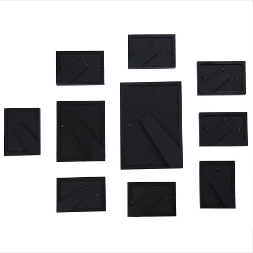 Adeco PF0053 Decorative Black Wood 10Piece Picture Photo Frame Set: 8-4x6", 1-6x8", 1-8x12", Wall Hanging or Table Top, Black