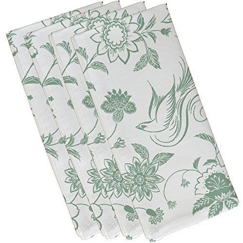 E by design Traditional Bird Floral, Floral Print Napkin, 19 x 19", Green