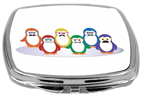 Rikki Knight Hipster Penguins with Mustaches and Glasses Design Compact Mirror, 17 Ounce