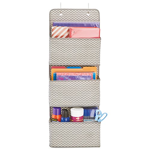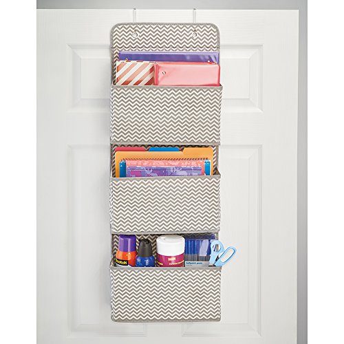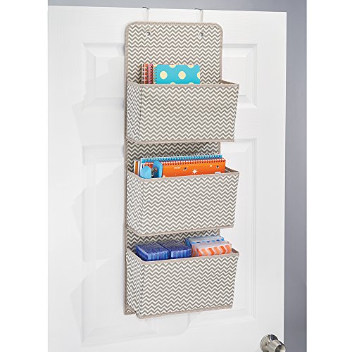 mDesign Wall Mount/Over the Door Fabric Office Supplies Storage Organizer for Notebooks, Planners, File Folders - 3 Pockets, Taupe/Natural