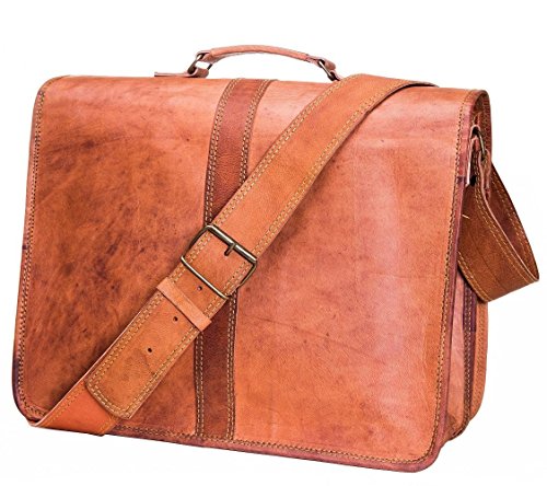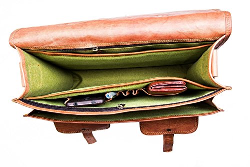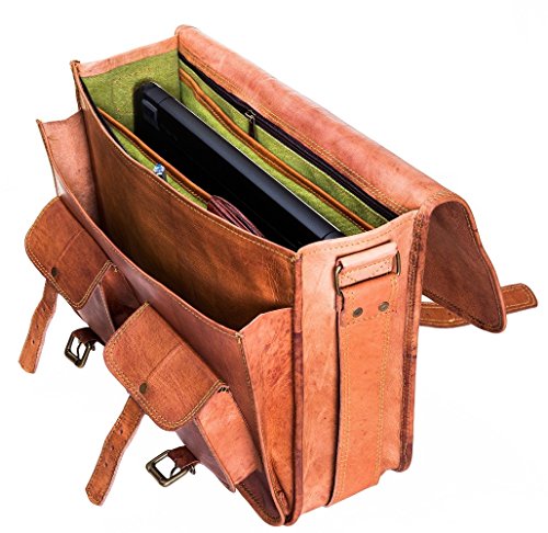 -. Feature : 100% IMPORTED LEATHER BAGS | Handmade from FULL GRAIN ANILINE LEATHER, the best leather money can buy | Made from Raw Rough Red & Rustic Leather | Bags are Stiff from Outside for Heavy duty protection and Soft from inside for gentle care | Note: Bags have a light leather smell which is due to packaging, once received please keep it open for few hours and it will be ready to use | Each bag has a light shade and gets darker and softer as you use them | Overall quality is good / ARRIVE IN STYLE | Double-stitch seams at key places for stylish look | 3 inside partitions for all your stuff | 1 back chain pocket for important documents | 1 front chain pocket for passport, driver's license | 1 front visiting card pocket | 1.25-Inch grab handle for comfortable handling | 55-Inch long adjustable shoulder strap | High-guage vintage brass buckles & rivets | High-quality zippers for a Red & Rustic look | Ride hard, feel better! / COMFORTABLE & SPACIOUS | Your 16-Inch shoulder file cabin bag is perfectly sized | Can be expanded upto 2 inches for additional storage space | Thick inner padding to securely accommodate Apple iPad Mini 7.9-Inch, iPad Pro 9.7-Inch, iPad 2017 9.7-Inch, iPad 3 9.7-Inch, Mac Air 11-Inch, Amazon Fire HD 8 Tablet 8 inch, or other tablet sizes 4 to 15 inch | Ideal for college or office, air travel | Can be hand-held or worn on shoulder | Great for bikes, buses & busy street / COLOR & DESIGN | These Bags are not colored or dyed | Natural texture shades are given through a traditional Indian process using Ayurvedic Oils and Sun tanning, so color of each individual Bag will be Unique and different from the one pictured here | Every virgin leather unused bag has a light shade which gets DARKER and SOFTER as you use them / BUILT TO LAST | Heavy-duty inner lining to protect contents | Convenient, adjustable shoulder strap & sturdy handle | Perfect for personal use & gifting option | Amazon P.R.Ime delivery | Can be Gift messaged | Gift wrap available | A2Z return policy | BUY NOW WITH FULL CONFIDENCE