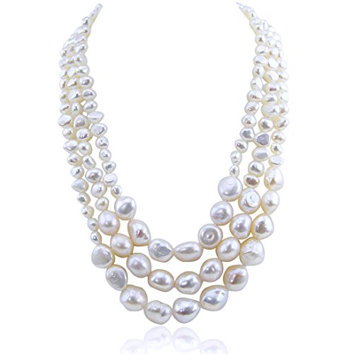 17.5-20 inch 7-13 mm,3 row White Freshwater Cultured Pearl necklace with mother-of-pearl base metal clasp