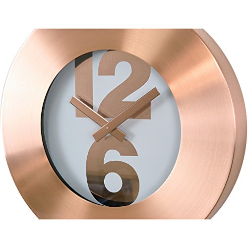 -. Binding : Kitchen -. Brand : Time Concept -. Feature : Unlike any other clocks on the market, these gold, silver and bronze clocks express personality and individuality. / Simple and stylish these steel framed clocks definitely make a statement and coordinate with any interior. / Each clock may have a slightly different look depending upon lighting and when viewed from different angles, making them a must have for modern interiors. / Requires 1 AA battery, which is not included. / Clock measures approximately 11.81 H x 11.81 W x 1.57 L inches. -. Label : Time Concept -. Manufacturer : Time Concept -. MPN : TELR1010CP -. PartNumber : TELR1010CP -. ProductGroup : Home -. ProductTypeName : HOME -. Publisher : Time Concept -. Studio : Time Concept -. Title : Time Concept Metal Wall Clock - Futuristic - Copper - 12"