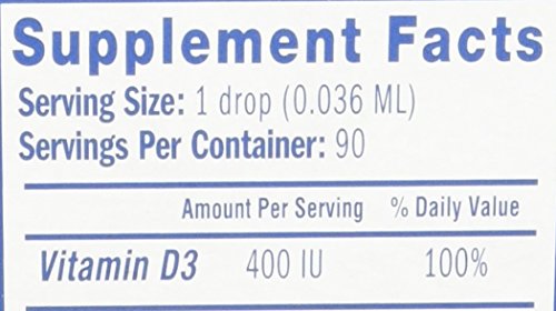 Contains 400 IU of Vitamin D per serving; 1 drop/day; 90-day supply