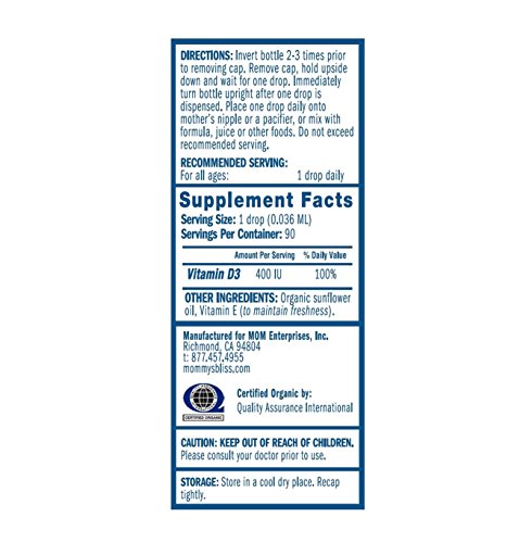 Mommy's Bliss Vitamin D Organic Drops, 0.11 Fluid Ounce