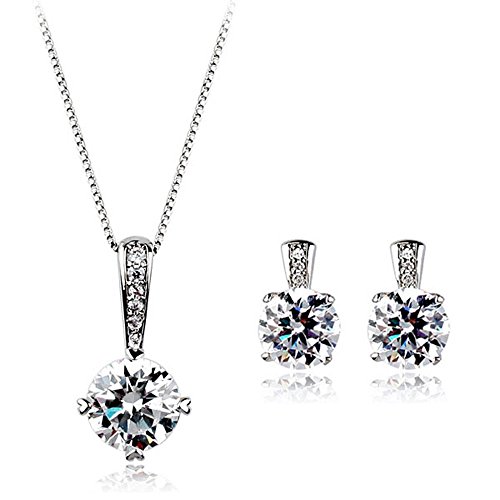 Beautiful and stylish jewelry set, swarovski elements cubic zirconia pendant on a delicate chain and stud earrings, white gold plated
