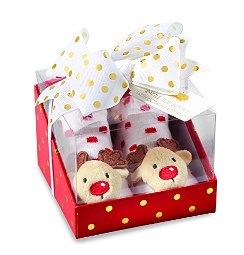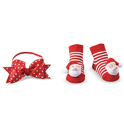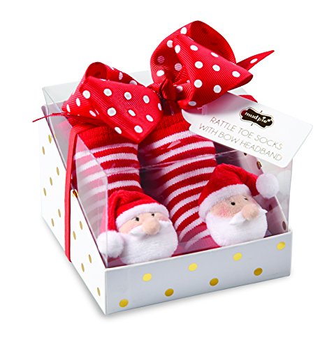 Mud Pie Christmas Baby Girl Rattle Toe Sock & Headband Set