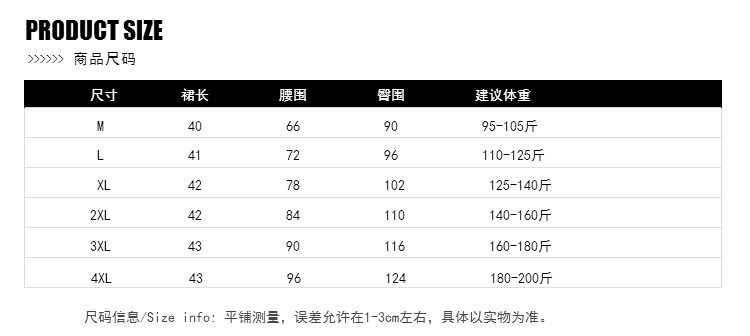 • 尺码: 都带安全裤 L XL 2XL 3XL 4XL