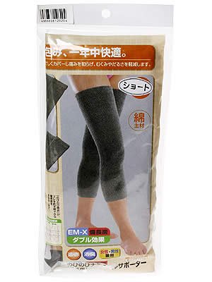 "EM-X Bincho charcoal Norihide Natural Supporter Knee (Short type 2 pairs for knee)" Unisex is "is a knee supporter using EM-X and Bincho charcoal as a material.