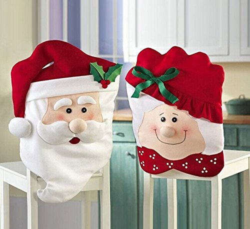 -. Binding : Kitchen -. Brand : Yosoo -. Feature : 1. Dress up your chairs for the holiday season with these festive Mr & Mrs Santa Claus Christmas kitchen chair covers / 2. Soft and comfortable material / 3. Easily slip over the back of chairs. Each fits over the top of your chair and covers the front and back of the chair / 4. Gives a festive touch to your furniture / 5. Bright red and white seasonal colors -. Label : Yosoo -. Manufacturer : Yosoo -. Model : yosoo-seat -. ProductGroup : Home -. ProductTypeName : HOME -. Publisher : Yosoo -. Studio : Yosoo -. Title : Yosoo Creative Santa Cute Chair Back Seat Covers Dinner Decor Christmas Room Kitchen Decoration Dining Chair Slipcovers