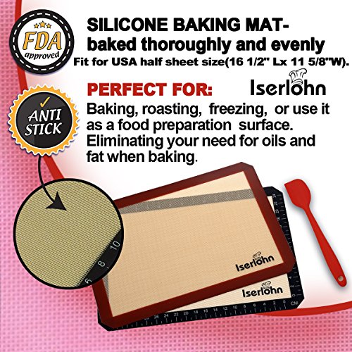 Bakefuntime Silicone Baking Mat with Heat Resistant Silicone Spatula, Nonstick Cookie Sheets Pan Liners (2 Pack), Fit for US Half Sheet Size(16.5x11.6 Inch)