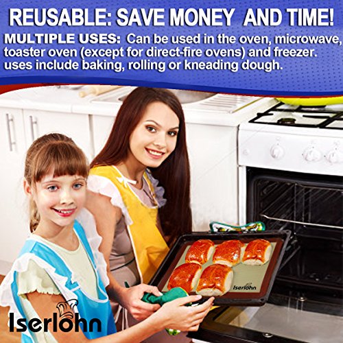 🍰MULTIPLE USES:🍞Our multipurpose silicone cooking mat can be used in the oven, microwave, toaster oven (except for direct-fire ovens) and freezer. Long lasting withstands temperatures varying from -40 degrees C to 260 degrees C (-40 degrees F to 500 degrees F). The versatile durable cookie sheet can be used on the countertop for all types of dough