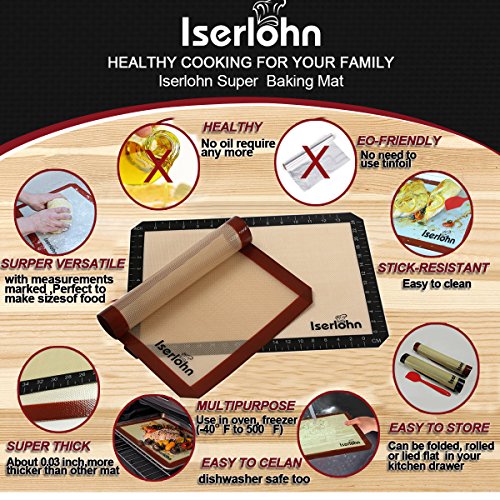 🍪EXTRA BENEFIT:🍩 Besides our food-grade silicone baking sheet liner, you will also receive a silicone spatula: 8.6" x 1.7", our practical red scraper is flexible, light weight, durable, stain and odor resistant. This cooking utensil can be used as a scraper spatula, cake spatula, baking spatula or cooking spatula. Heat proof, Non-toxic, odor less, make it to be great bakeware tool