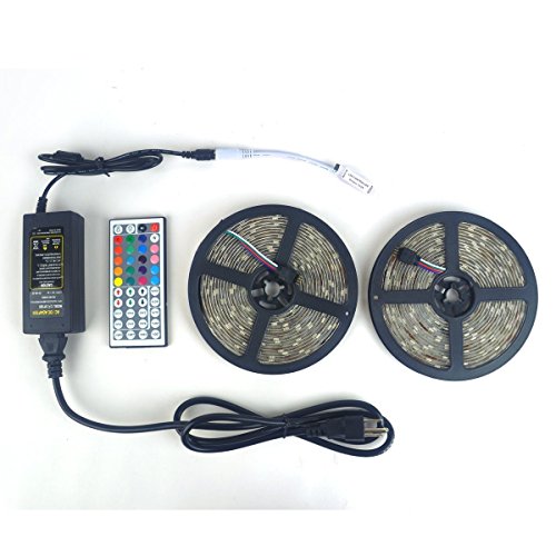 LEDniceker 2 Reels 12V 32.8ft Waterproof Flexible RGB 5050 LED Strip Light Kit, Multi-colored, SMD5050 300 LEDs, LED Strip Kit & MINI 44-key IR Controller + 12V 5A Power Supply, Adhesive Light Strips