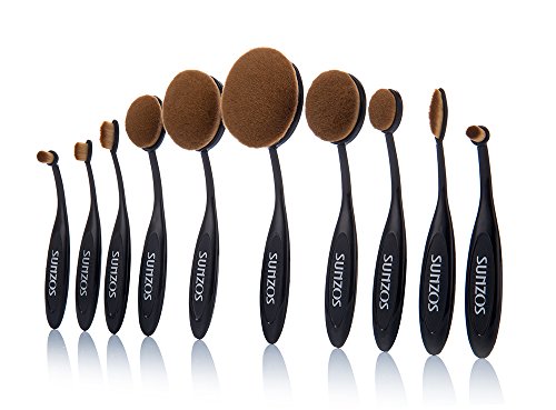 메이크업 브러쉬 SUNZOS 메이크 브러시10개 세트 화장 브러시 세트 메이크 브러시 세트 칫솔형 디자인 메이크 브러시(블랙)