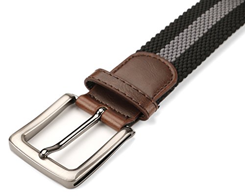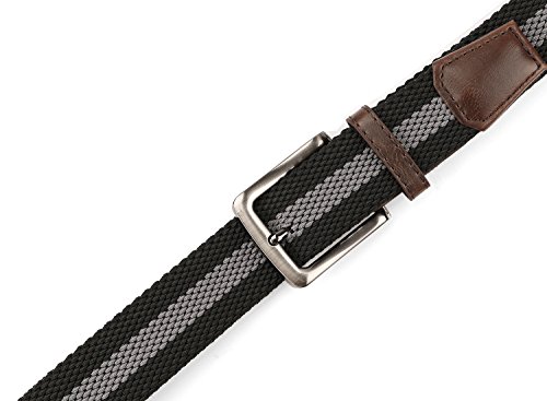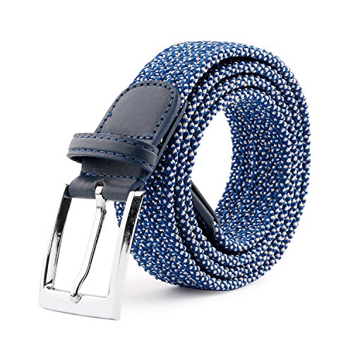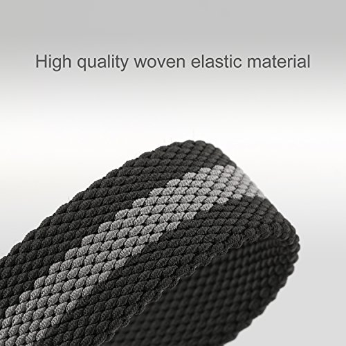 High quality woven elastic material and silver metal buckle, No hole design, you can belt it up freely and adjustable fit for comfort
