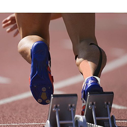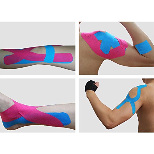 -. Feature : 1.WATER RESISTANT:Highly water resistant stable adhesive strength, sticks for 3-5 days at a time, can be worn under clothes, through heavy workouts, even showers & in the pool, it dries quickly / 2.HIGH QUALITY: made of original cotton, Hypoallergenic and Free of all Latex and Metals.Super light feeling and comfortable wearability,without feeling of irritation. / 3.AVOID INJURY: Kinesiology tape helps reduce muscle fatigue and joint pain as well as promotes blood flow for faster recovery.Elastic pain tape ideal for Shoulder, Elbow, Wrist, Neck, Back, Muscle, Knee, Ankle, Foot / 4.Kinesiology Tape designed to work with your body and flex with your muscles to help enhance performance by preventing or relieving spasms and cramps in overused or injured muscles / 5.Easy to use: Not precut so you can cut it to the size and shape you need for your specific injury or performance requirement