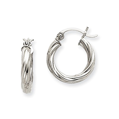 Grace and style, a combination that offers timeless beauty fashioned from polished 14k white gold. They feature a traditional twisted hollow design with a snap-tight hinged post and measures approximately 3.25mm in width by 15mm (9/16 inch) in diameter.Feature