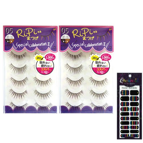 RiPi지 속눈썹 (re피지 속눈썹) 5페어 허니 믹스(RP-18)x2 개세트+뮤 체스 네일(멀티 보더)20 매입 세트