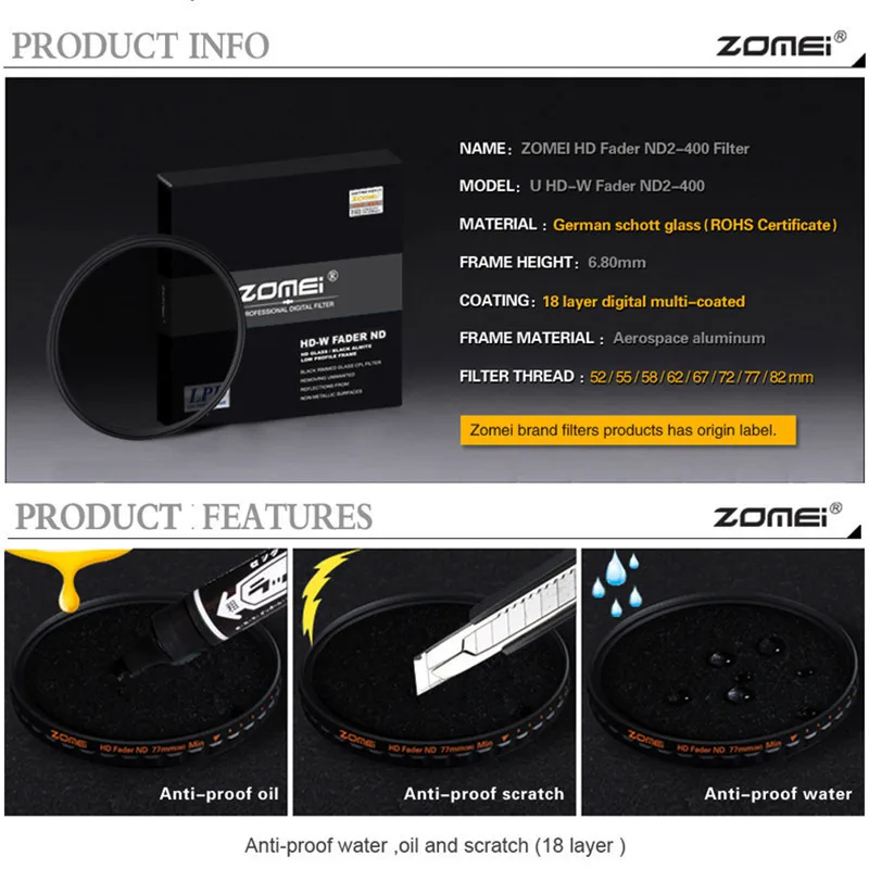 Model Number:Neutral Density Filter