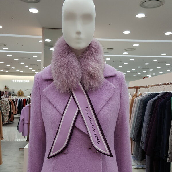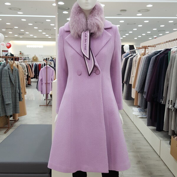 A라인 으로 허리선이 가늘어 보임 울코트로 우아함 과 여성스러움 여우털 목도리가고급 스러움을 강조함