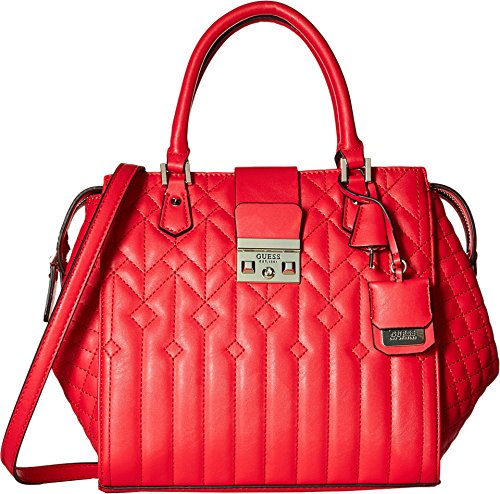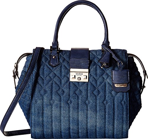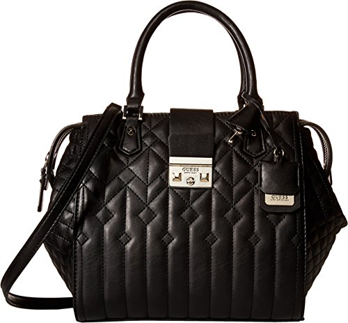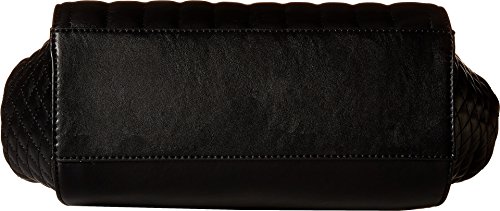 Top-zip closure with brand logo magnetic snap closure flap. Dual rolled handles with detailed key-chain tag. Adjustable shoulder strap. Exterior flaunts a quilted stitch design with back zip-closure. Interior features zip-pocket and multiple slip pockets. Flat-base. Lining: 80% polyester, 20% cotton. Imported.