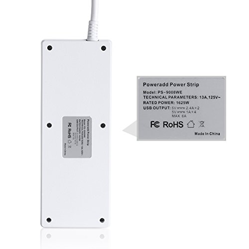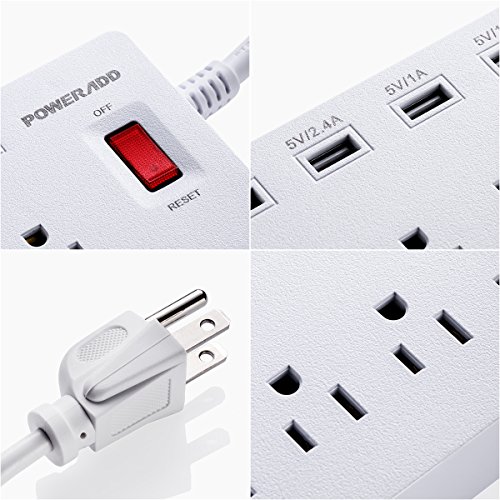 Poweradd Surge Protector with 6ft Cord Ideal for Home & Office This surge protecotor features flame-resisting materials, high temperature resistant 6 AC 3-prong grounded and gives you