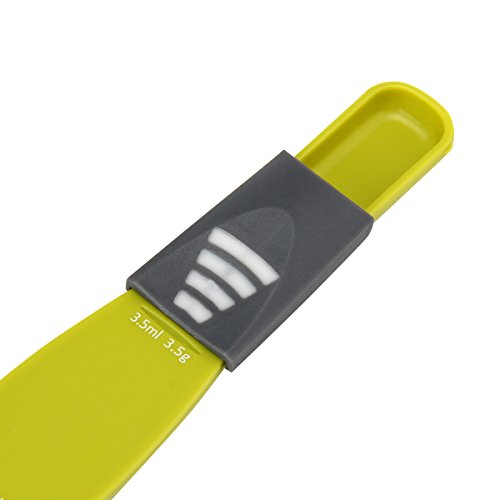 - ✔Simply slide the adjuster to your desired increment and scoop. Replaces 9 measuring spoons. One end measures 1/8 tsp, 1/4 tsp, 1/2 tsp, 3/4 tsp and 1 teaspoon. The other measures 1 tsp, 1-1/2 tsp, 2 tsp, 2-1/2 tsp, 1 tbsp.This measuring spoon can adjust to be a 1ml - 13ml measuring need.