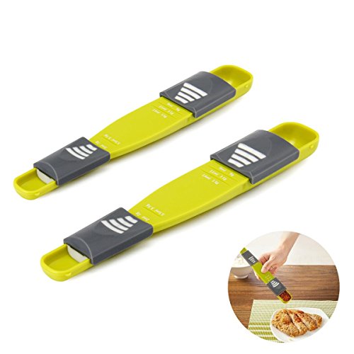 2 Pack - NachunLLC Plastic Adjustable Measuring Spoon, Double Sided Metric Spoons for Measuring Dry and Liquid Ingredients