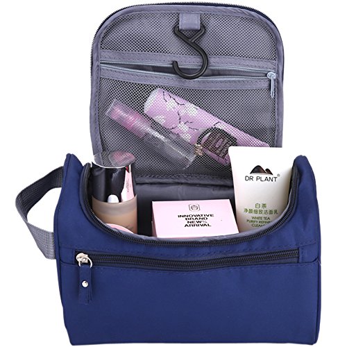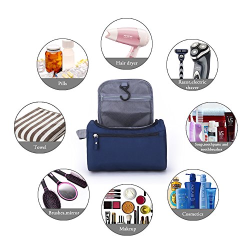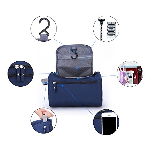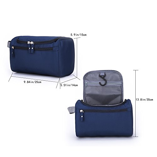Kunge Hanging Toiletry Bag Organizer For Men or Women Waterproof - Travel Size with Hanging Hook for vacation Cosmetic (Navy Blue)