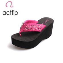 新款acttip柳钉拖鞋凉拖人字拖夹脚拖沙滩拖女款时尚拖鞋坡跟