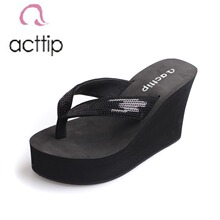 新款acttip亮片带平底坡跟拖鞋女拖夏季沙滩拖夹脚人字拖防水台