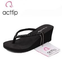 acttip坡跟凉鞋 女 夏季水钻装饰厚底人字拖 沙滩松糕鞋