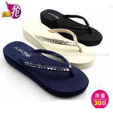 正品坡跟凉鞋 女鞋 夏 闪亮镶钻 厚底人字拖 人字拖沙滩鞋