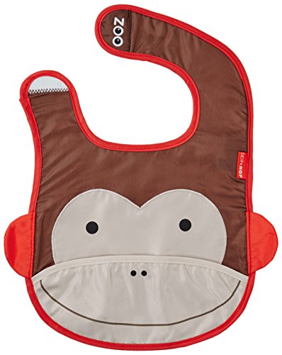 -. Feature : Signature Skip hop zoo characters / Built in, tuck away pouch perfect for storing dirty bibs / Lightweight, water resistant material / Catch all food pocket / Machine wash cold, hang dry