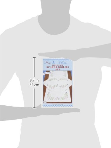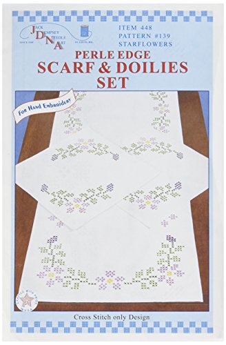Jack Dempsey Stamped Dresser Scarf and Doilies Perle Edge, Starflowers